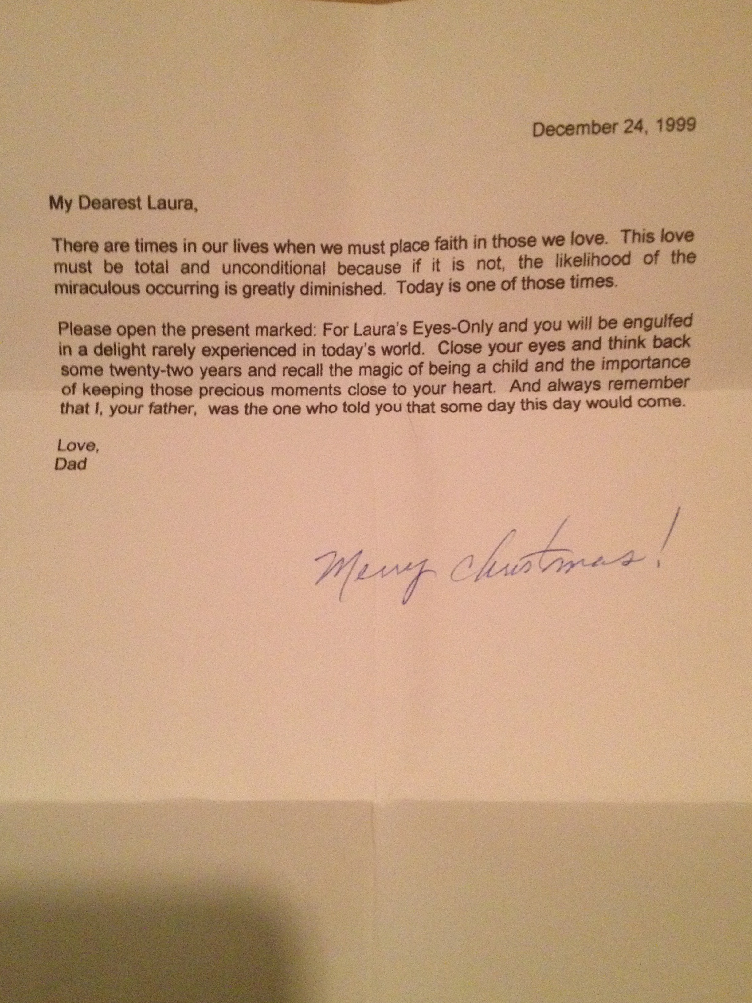 My sister did not get this present though. There was a note attached to this one for me – and my Mom said to read it out loud to everyone.